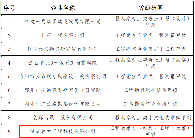 NEWS1月29日,中華人民共和國住建部發(fā)布《關(guān)于核準(zhǔn)2022年度第一批建設(shè)工程企業(yè)資質(zhì)名單的公告》,湖南致力工程科技有限公司喜獲工程(巖土)勘察甲級資質(zhì),為湖南省本次唯一一家取得該項資質(zhì)的單位,標(biāo)志著公司資質(zhì)建設(shè)取得重大戰(zhàn)略突破,形成了新的差異化發(fā)展優(yōu)勢,進(jìn)一步完善了特色鮮明的工程設(shè)計、勘察、咨詢、檢測、監(jiān)測全過程咨詢服務(wù)體系,夯實了公司專家(院士)工作站的技術(shù)基礎(chǔ),提升了公司核心競爭力和行業(yè)影響力。